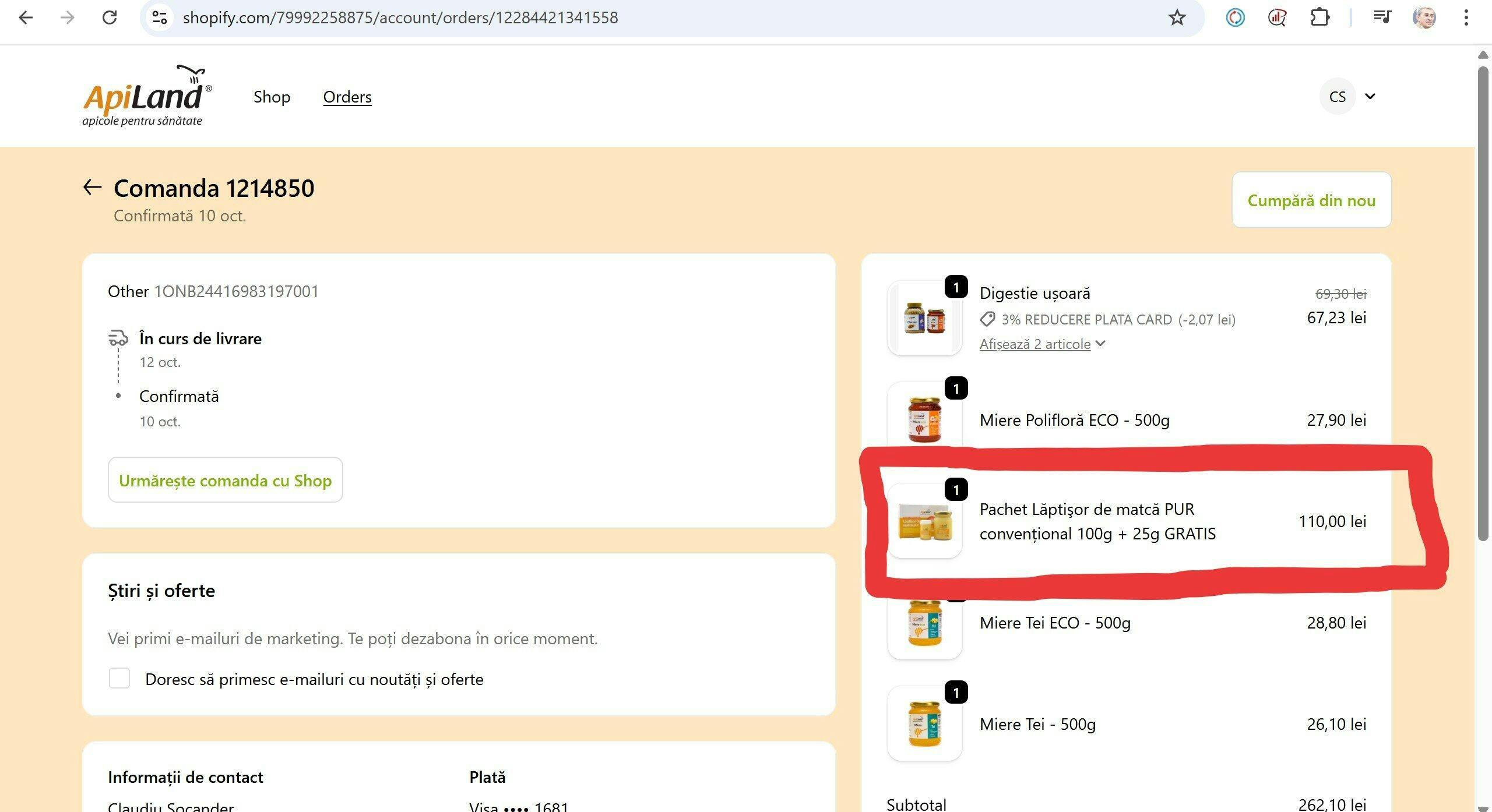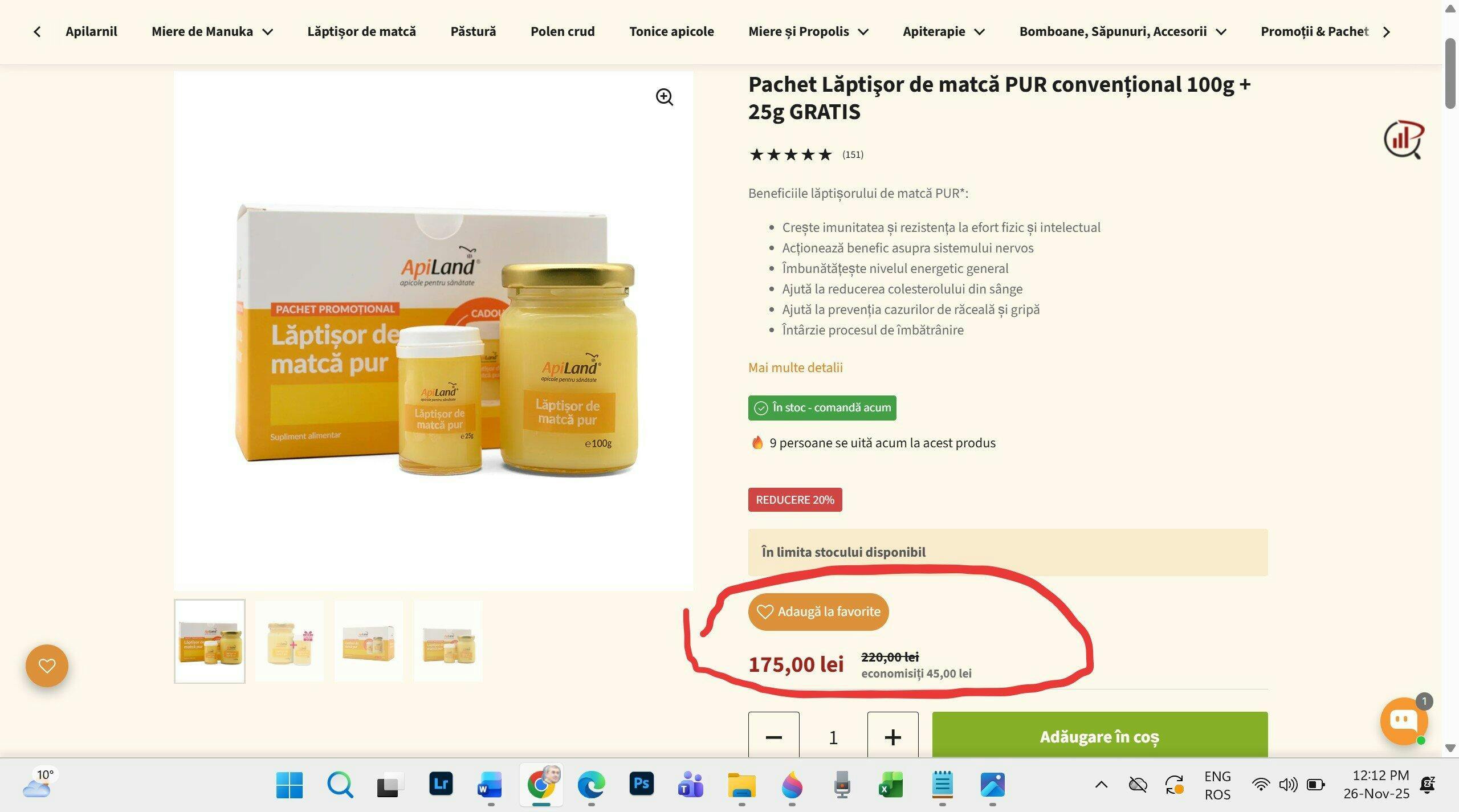 (Ex: 10g lăptișor de matcă PUR în 500g miere crudă)