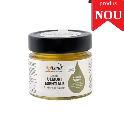 Mixul de uleiuri esențiale în miere de salcâm – Armonie Digestivă este un supliment alimentar 100% natural, creat pentru susținerea digestiei și a confortului digestiv, pe bază de miere de salcâm și uleiuri esențiale din plante aromatice atent selecționate.
